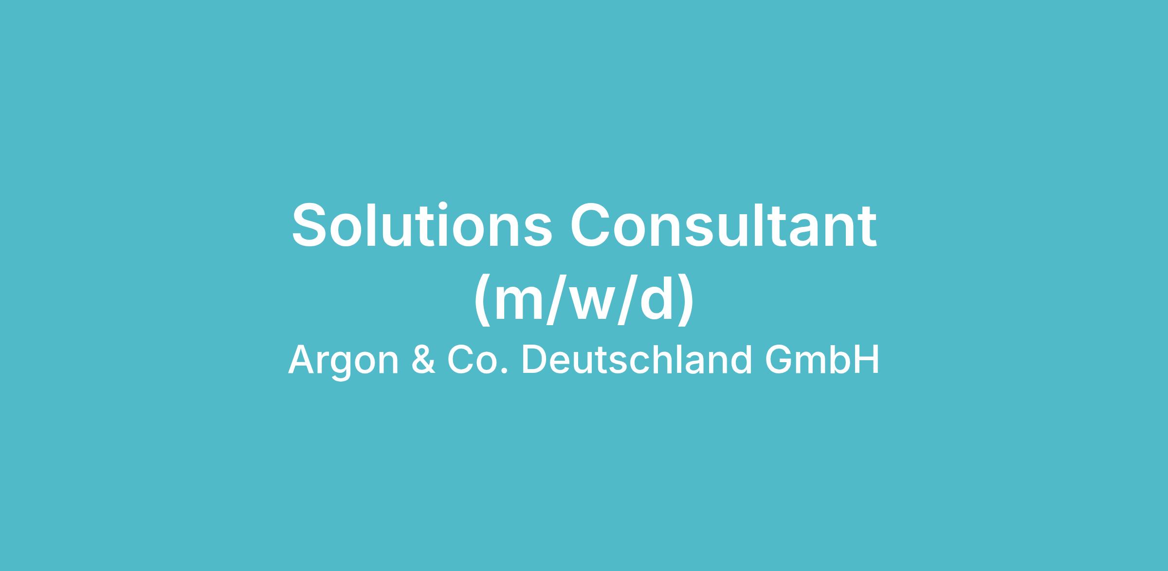 Werde Teil von Argon & Co Deutschland GmbH als Solutions Consultant (m/w/d) und gestalte innovative Lösungen in einem dynamischen Team.