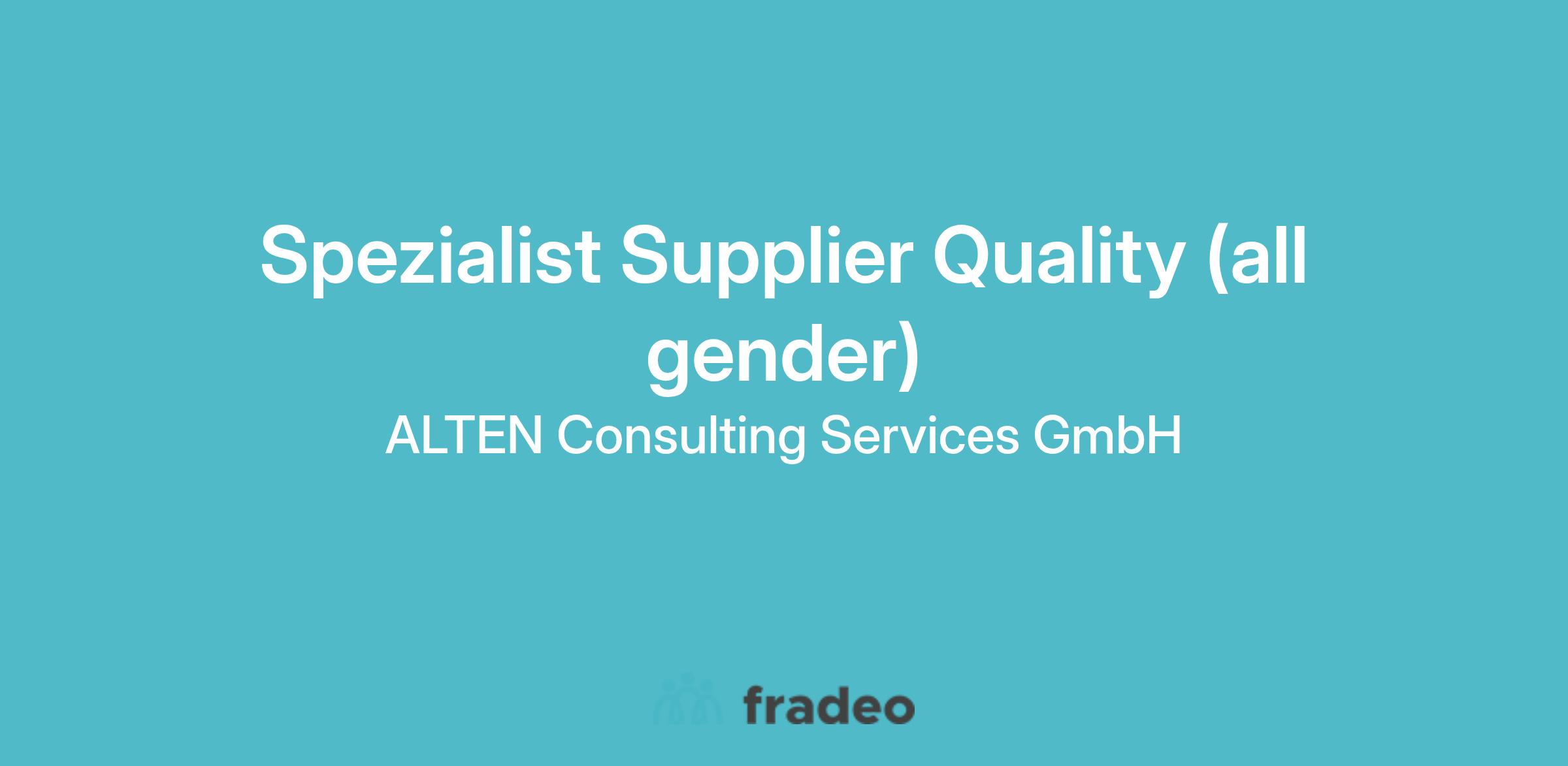 Spezialist Supplier Quality (all gender)