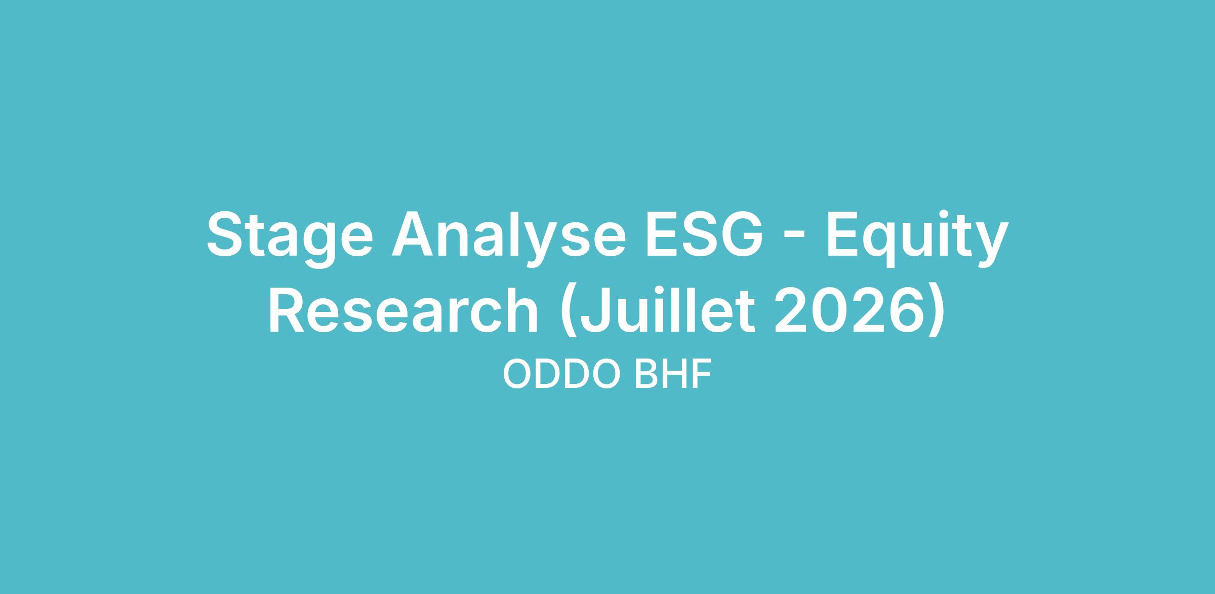 Au sein d'ODDO BHF Corporates & Markets, vous serez intégré(e) à notre équipe ESG basée à Paris et travaille en étroite collaboration avec les analystes financiers sectoriels du département Equities. Depuis 2005, le groupe ODDO BHF propose à ses clients de la recherche intégrant les critères ESG (Environnement, Social, Gouvernance).