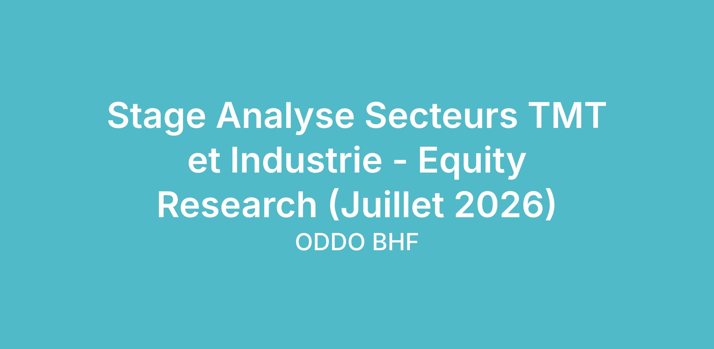 Au sein de l'équipe Recherche Actions d'ODDO BHF Securities, vous assisterez les analystes des pôles TMT et Industrie et le responsable du bureau d'études dans diverses missions :