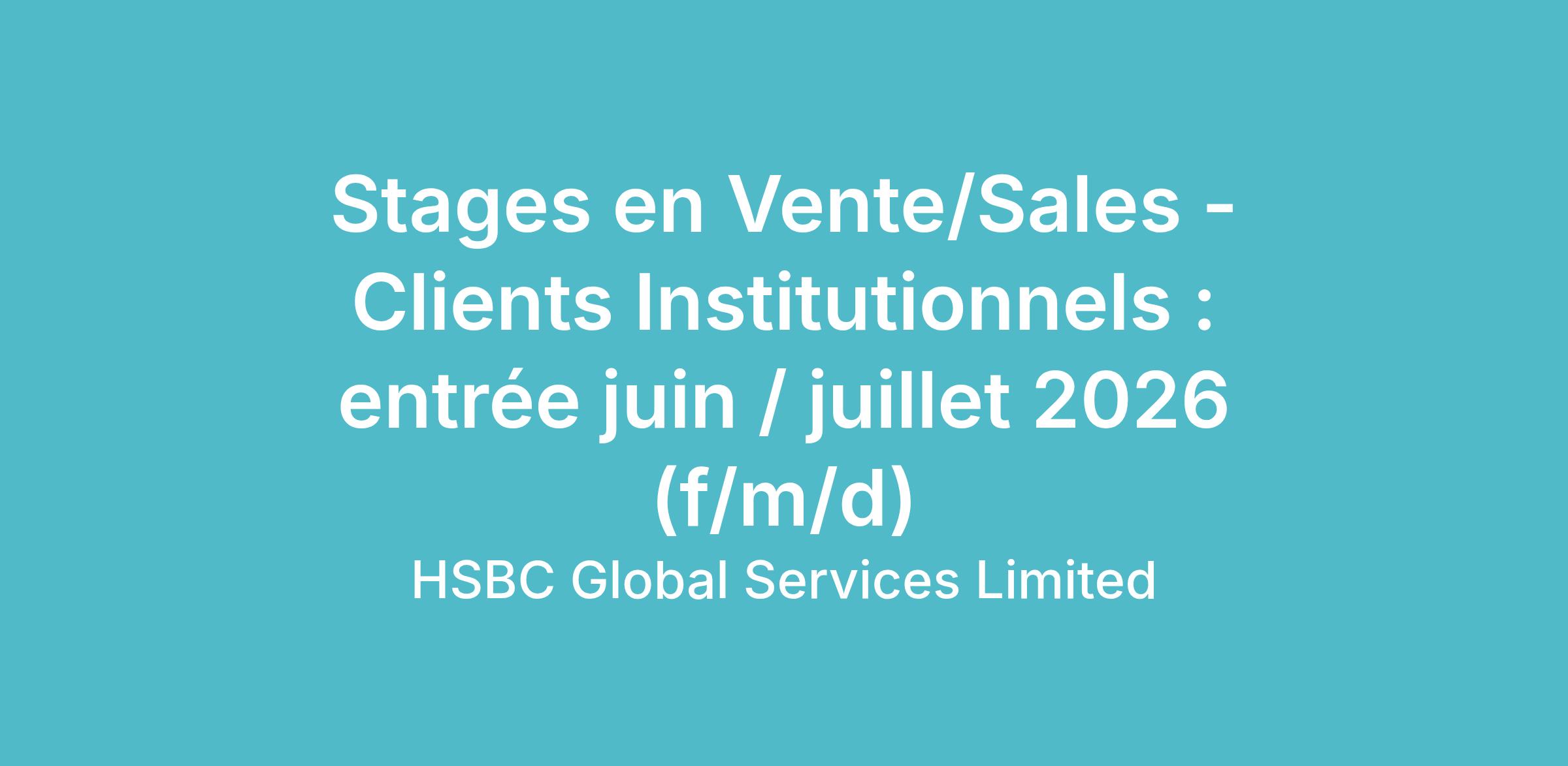 HSBC en France recrute chaque année des étudiants en stage ou en alternance et offre l’opportunité d’apprendre et gagner en expérience dans un contexte international. Ci-dessous plus de détails sur la mission concernée. N’hésitez pas à postuler !