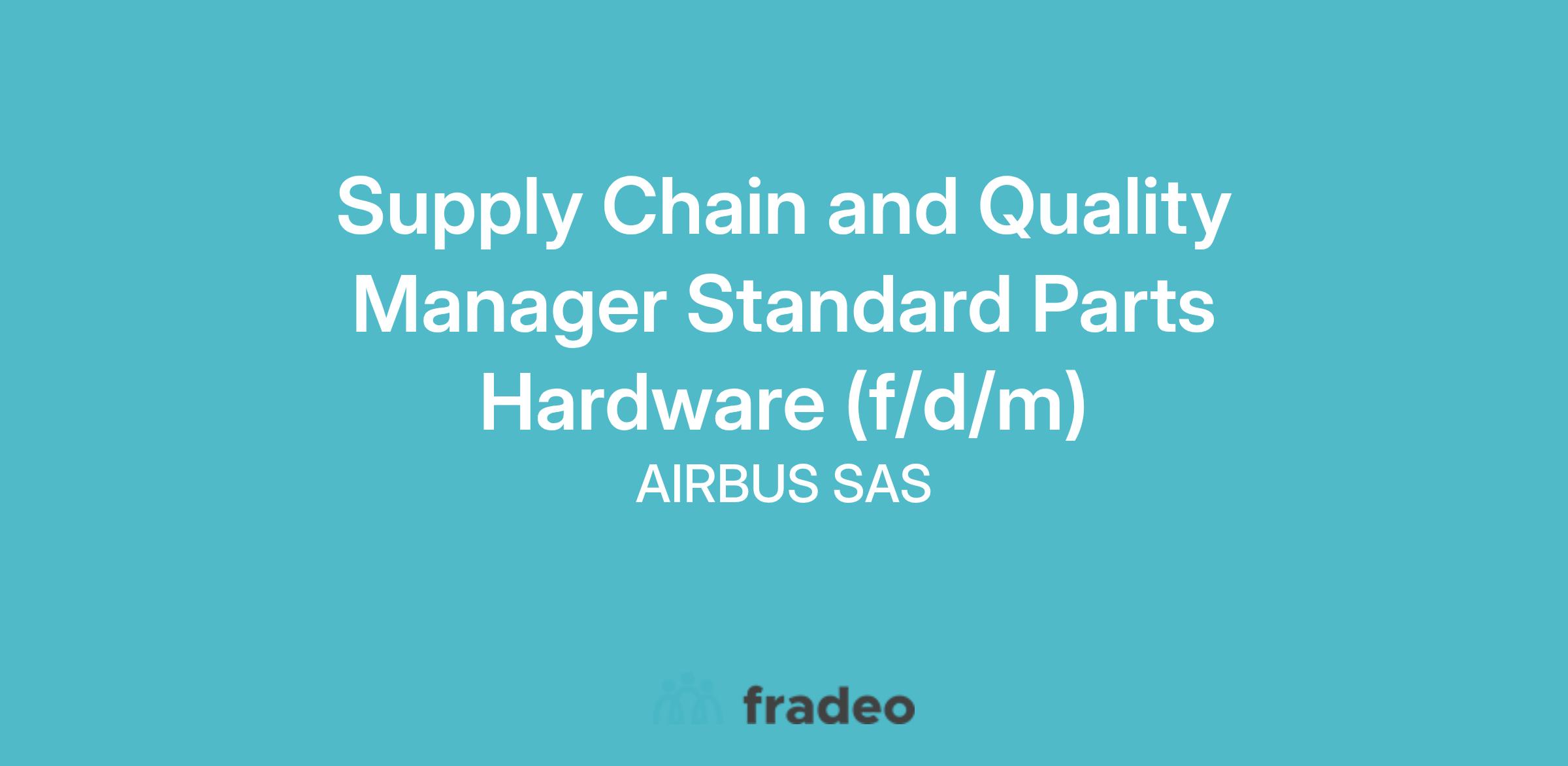 Airbus Commercial Aircraft is looking for a Supply Chain and Quality Manager Standard Parts Hardware (f/m) to join our Procurement Operations - Supply Chain Quality Team based in Toulouse, France.
