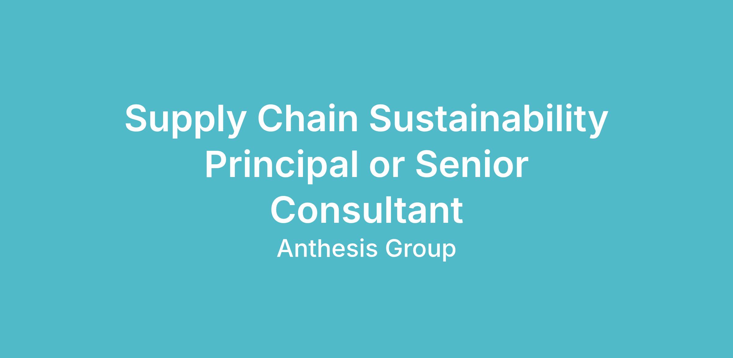 The Supply Chain Sustainability Principal or Senior Consultant will collaborate with colleagues across Anthesis's global business lines—including Climate, ESG Strategy and Reporting, and Circularity & Value Chain Transformation—to deliver expertise on value chain solutions.