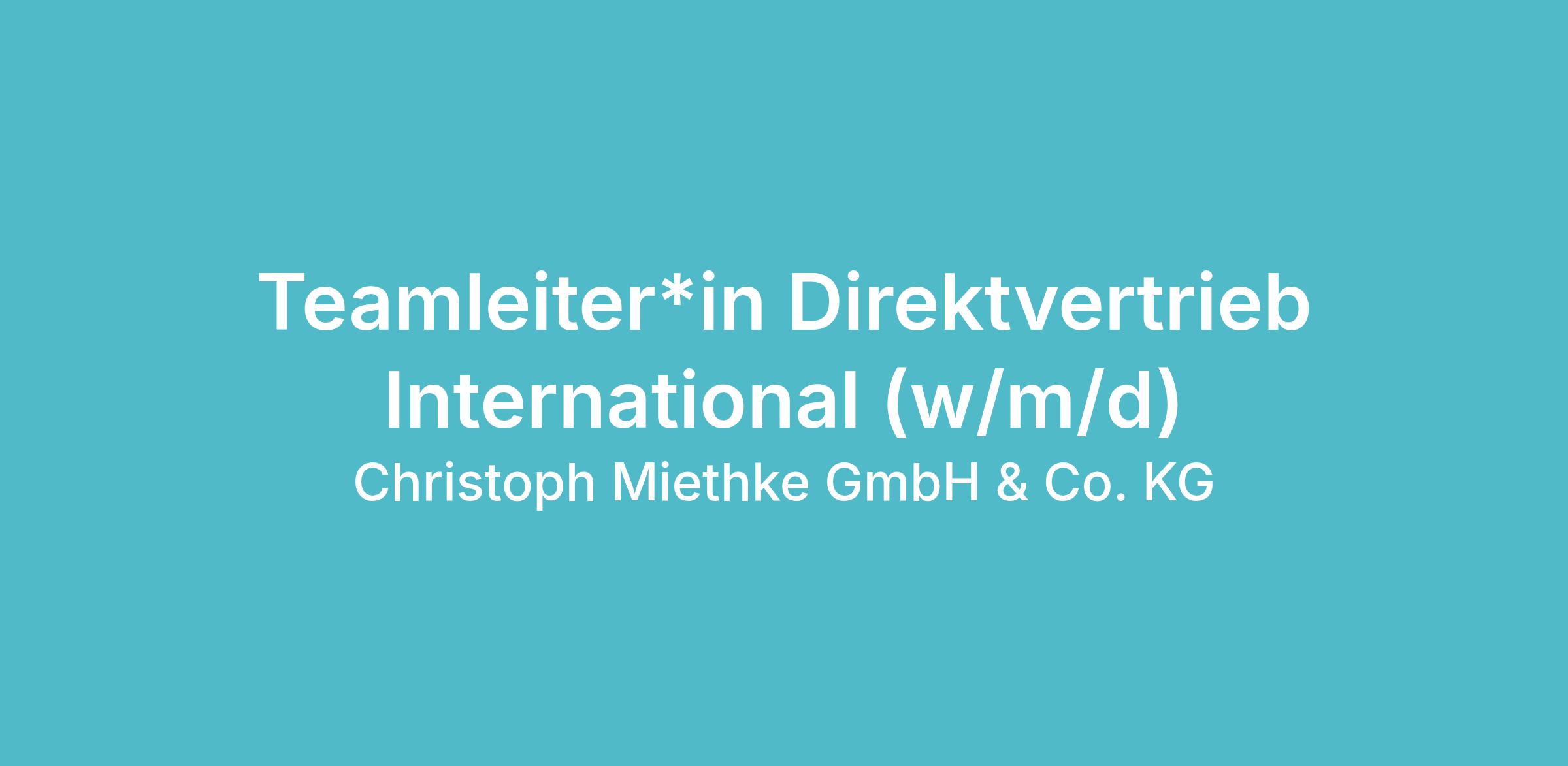Für unseren Direktvertrieb International suchen wir eine engagierte Führungspersönlichkeit mit analytischem Scharfsinn, Struktur und Kommunikationsstärke – jemand, der gemeinsam mit uns ein diverses Team lenkt, stärkt, weiterentwickelt und unsere internationalen Märkte begleitet.