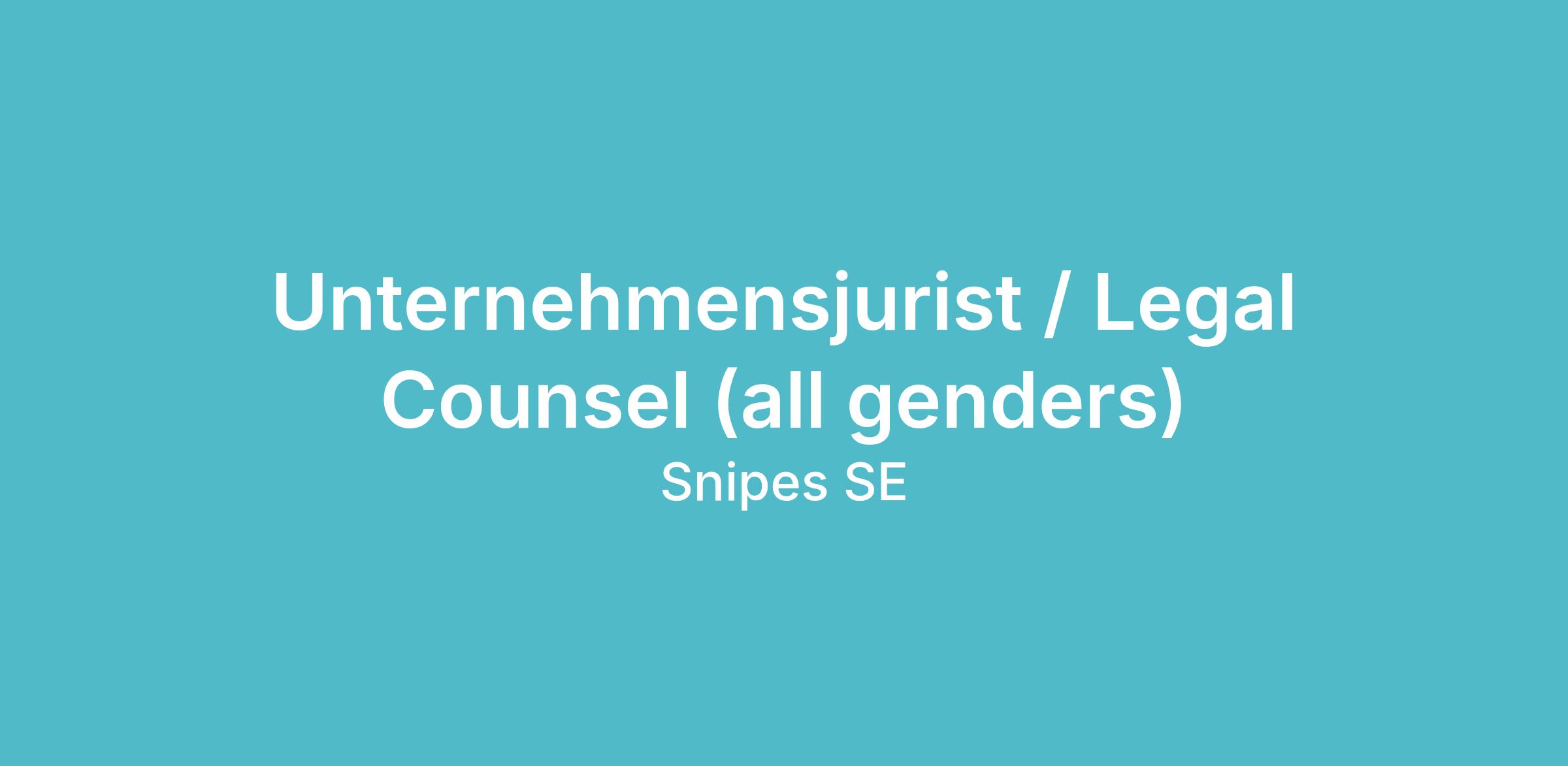Unternehmensjurist / Legal Counsel (all genders)