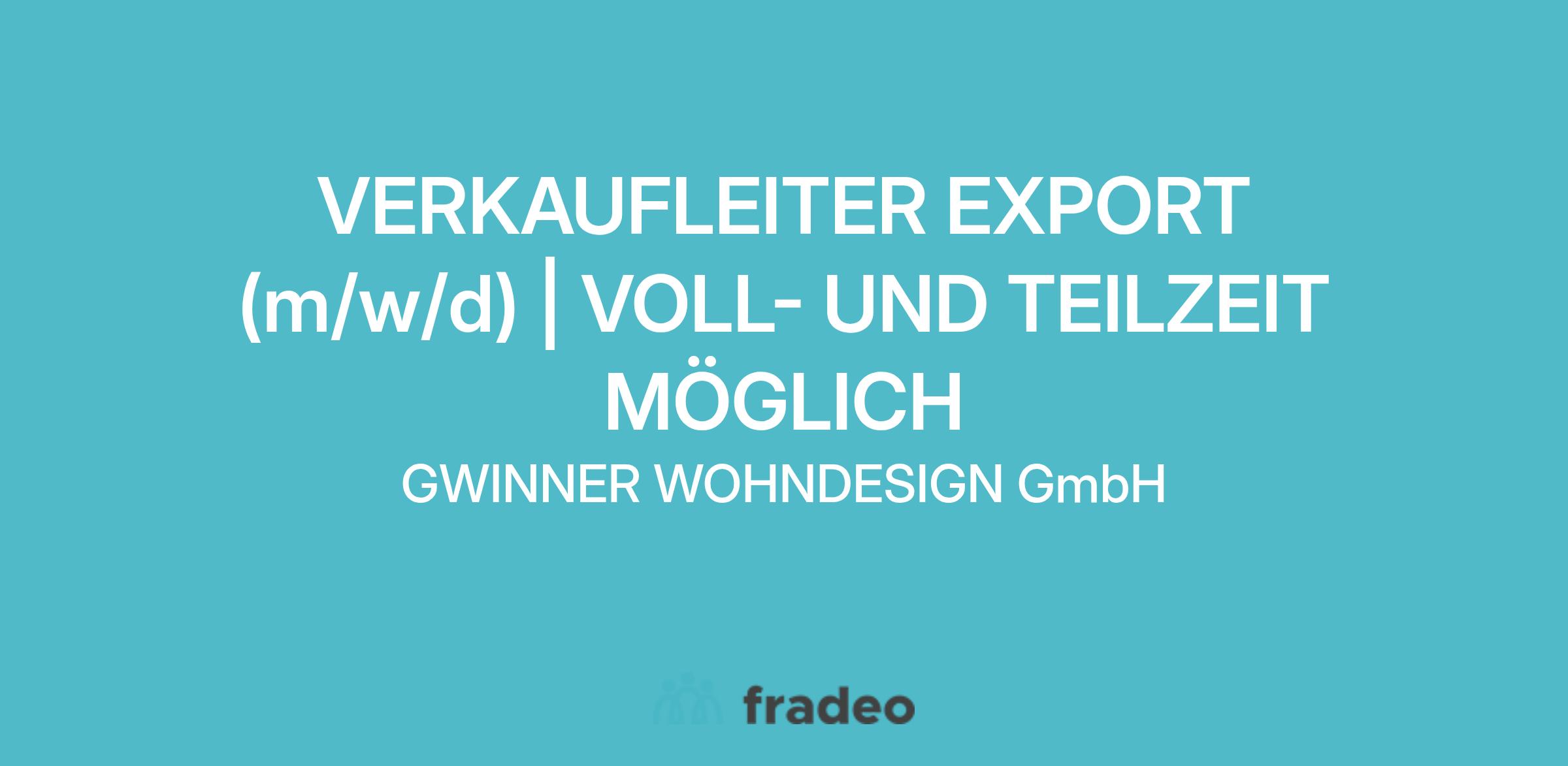 Verkaufsleiter Export (m/w/d) | Voll- und Teilzeit möglich