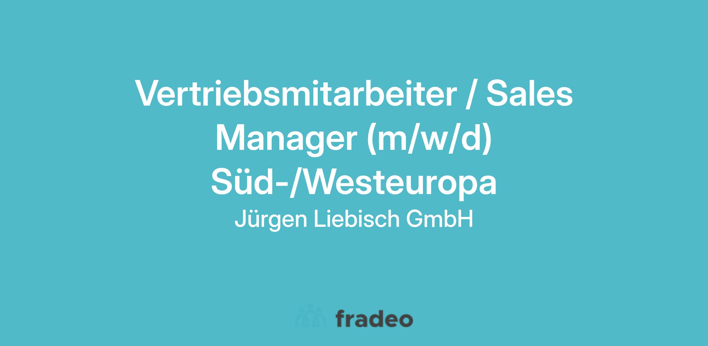Sales Manager /Vertriebsmitarbeiter (m/w/d) für Süd-/Westeueropa