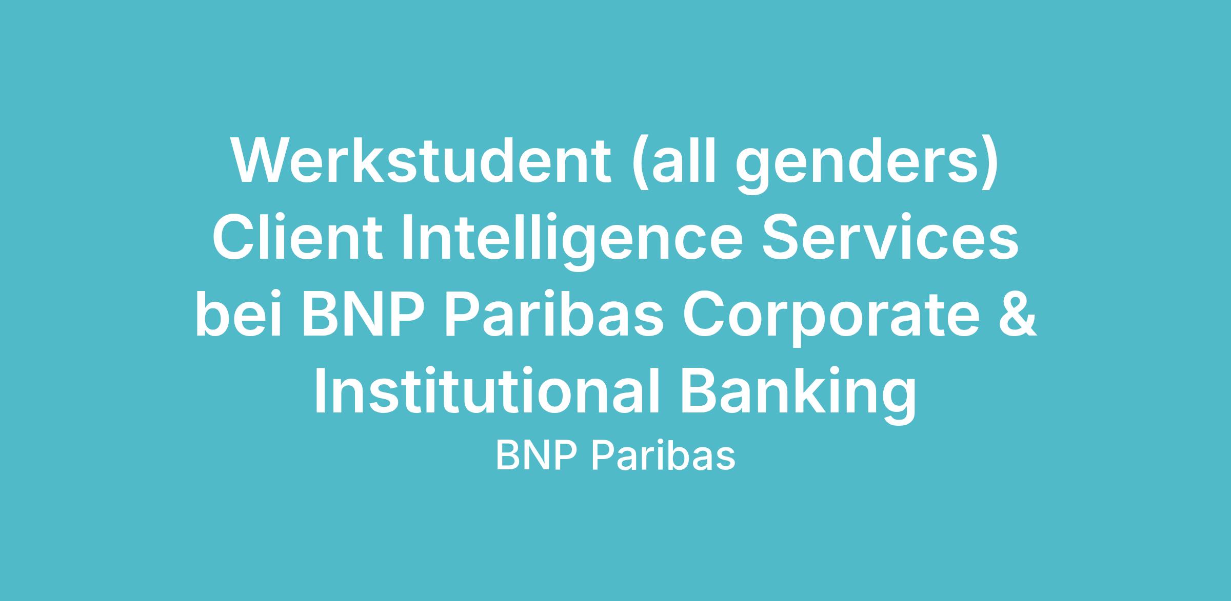 In Frankfurt suchen wir dich ab September in Teilzeit, befristet als Werkstudent (all genders) Client Intelligence Services bei BNP Paribas Corporate & Institutional Banking