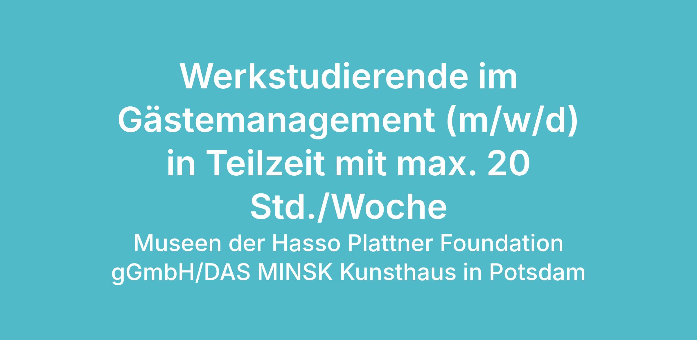 Die Museen der Hasso Plattner Foundation gGmbH sucht zum nächstmöglichen Zeitpunkt: