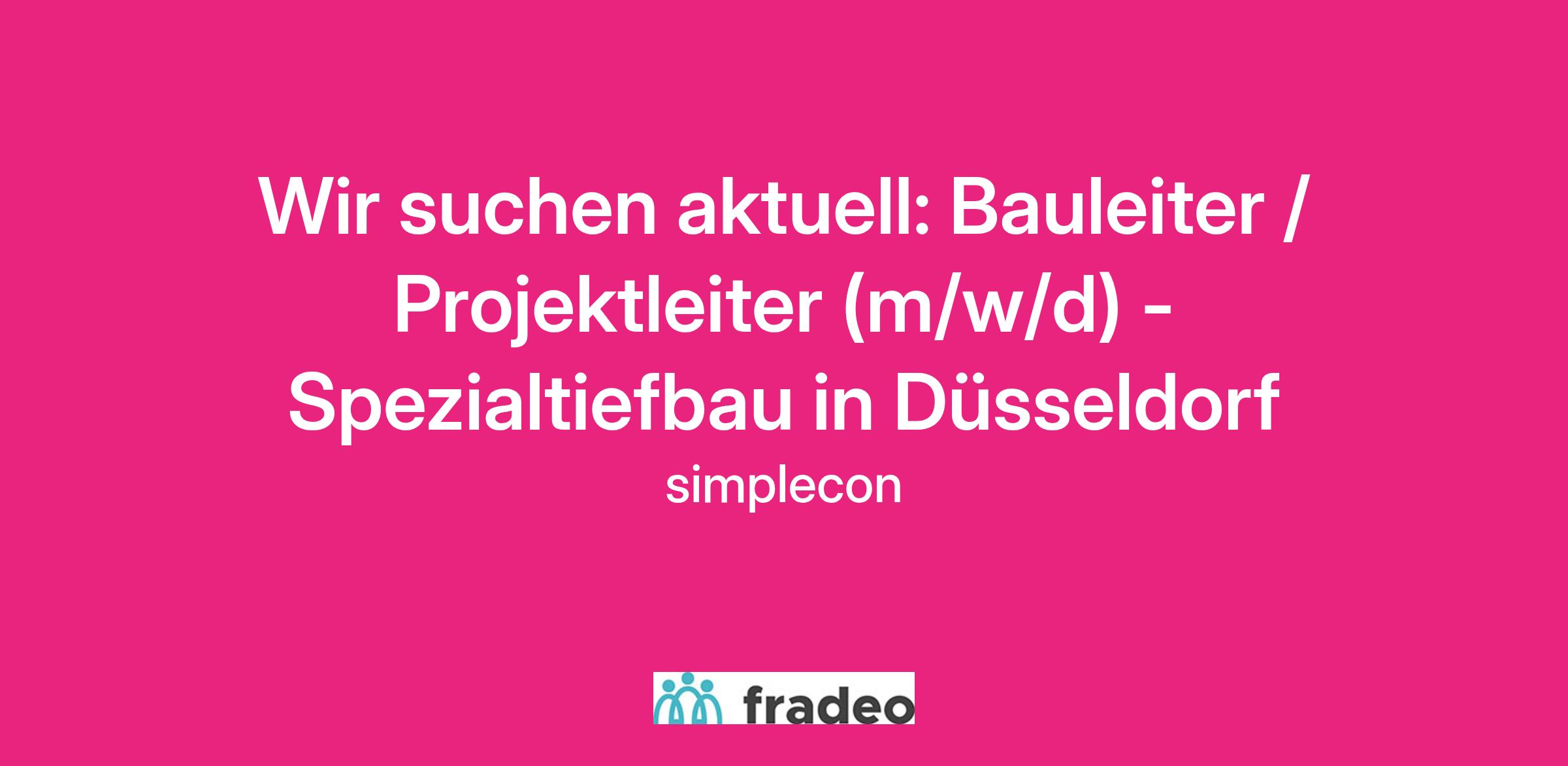 Unser Partner ist ein führendes deutsches Bauunternehmen mit Sitz in Düsseldorf und Teil eines französischen Konzerns, einem der größten Bau- und Infrastrukturkonzerne Europas. Zur Verstärkung des Teams wird zum nächstmöglichen Zeitpunkt ein Bauleiter (m/w/d) am Standort Düsseldorf gesucht.