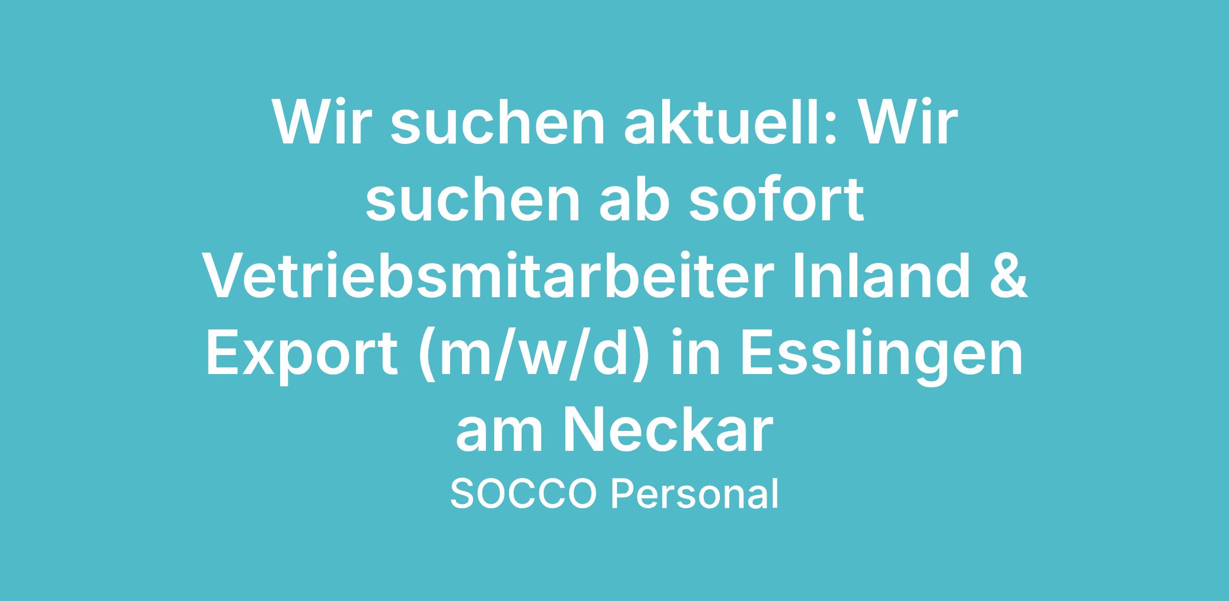 Wir suchen für unseren Kunden in Esslingen ab sofort einen Vetriebsmitarbeiter Inland & Export (m/w/d) mit folgenden Aufgaben und Anforderungen: