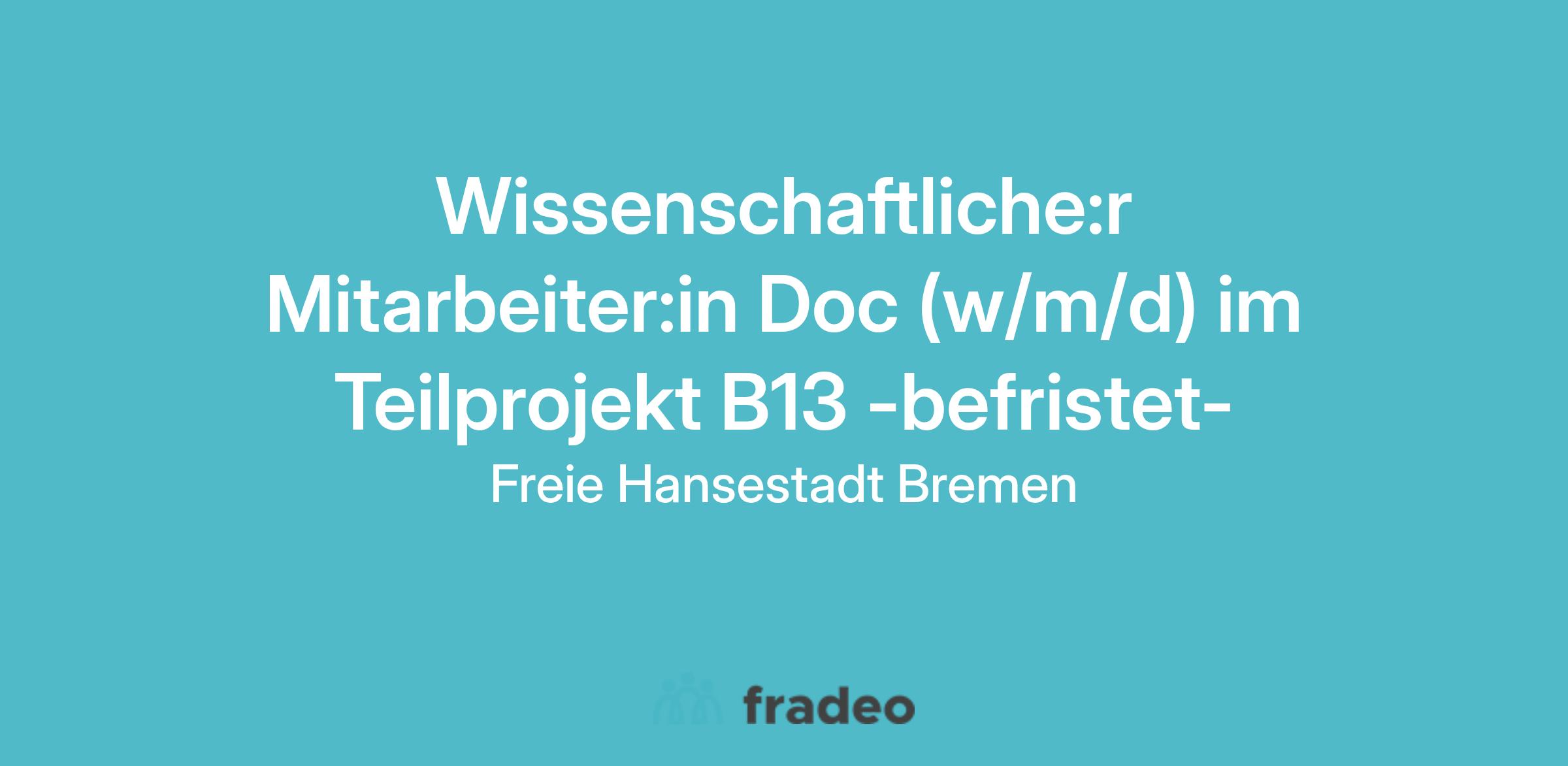 Wissenschaftliche:r Mitarbeiter:in Doc (w/m/d) Entgeltgruppe 13 TV-L