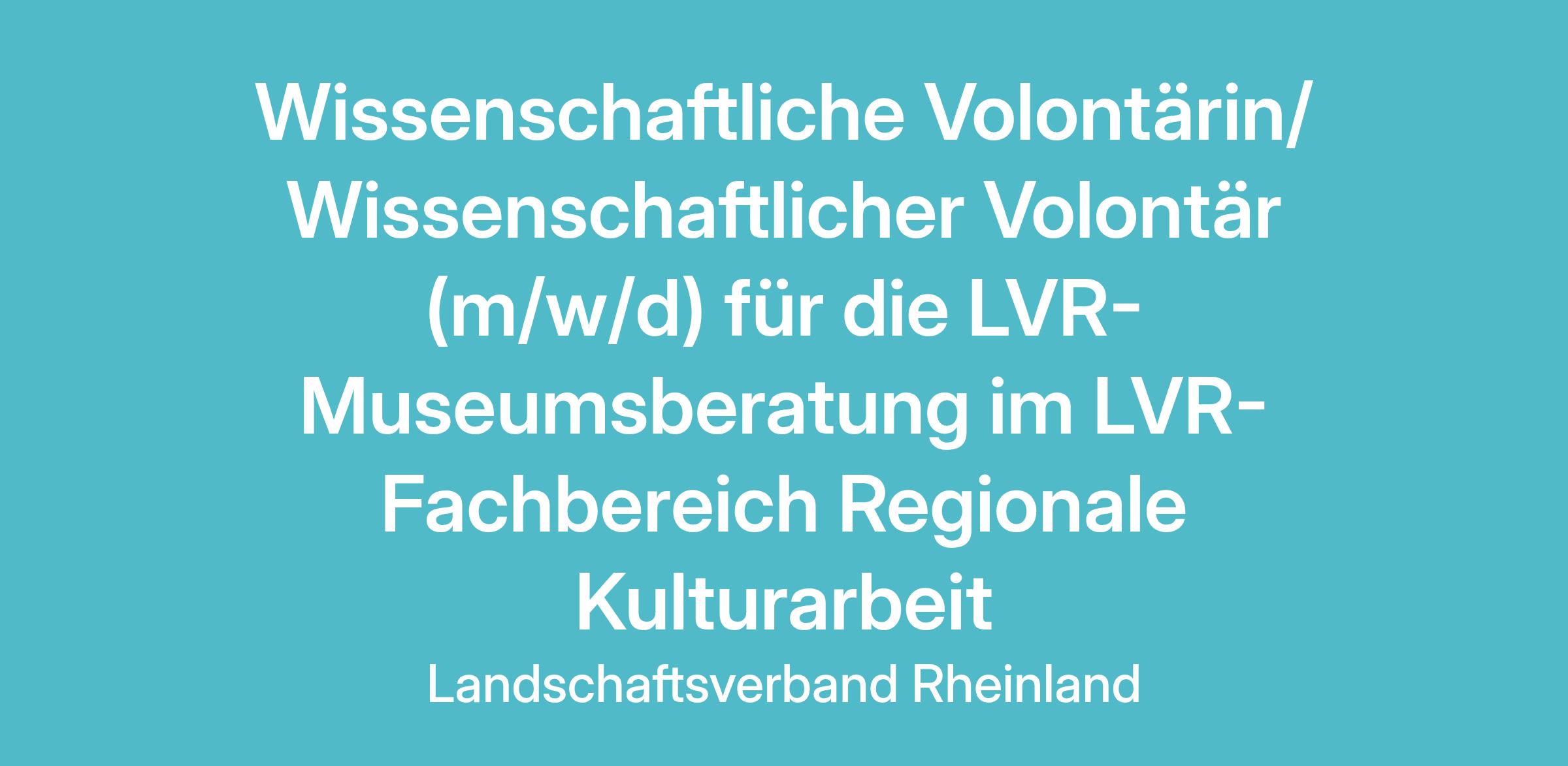 Wissenschaftliche Volontärin/ Wissenschaftlicher Volontär (m/w/d) für die LVR-Museumsberatung im LVR-Fachbereich Regionale Kulturarbeit